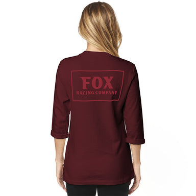 French terry 3/4 sleeve crew fleece Screen print art at wearer's left chest and center back Fox head clip label at side seam